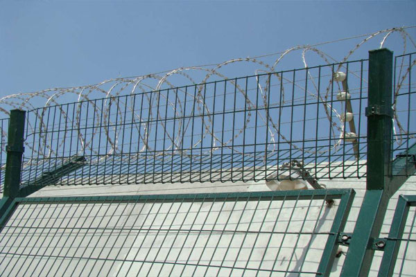 監獄防護網的主要特點:監獄防護網又稱監獄護欄網或監獄隔離柵主要是采用高強度的刀片刺網與普通防護網的結合由V型支架立拄加強型焊接片網安全防盜連接件和刀片刺網組成.刀片刺網是一種新型防護網由銳利尖角鍍鋅鋼板或不銹鋼薄板做刀片鋼絲做芯線組合而成的防護器材.