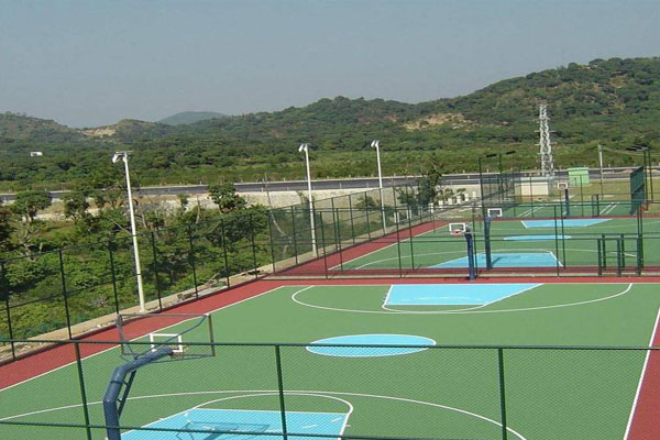 預埋件需提早預埋好(圍網設備前7-10天有必要做好確保預埋洞凝集度),體育場開孔標準為60CM(寬)70CM(長)*80CM(深)以3.08米為軸線中對中距離挖孔。在預先挖好的標準為孔中心放置一根直徑為110MM的PVC管材(管材長為70CM)體育場刺進地下50CM.